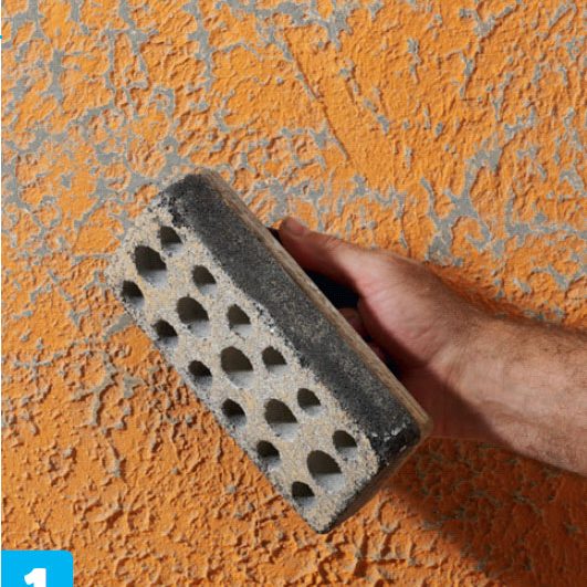Slip hele veggen. Her bruker vi en håndslipestein. Den er fin til å slipe de spisse struktur toppene flatere.