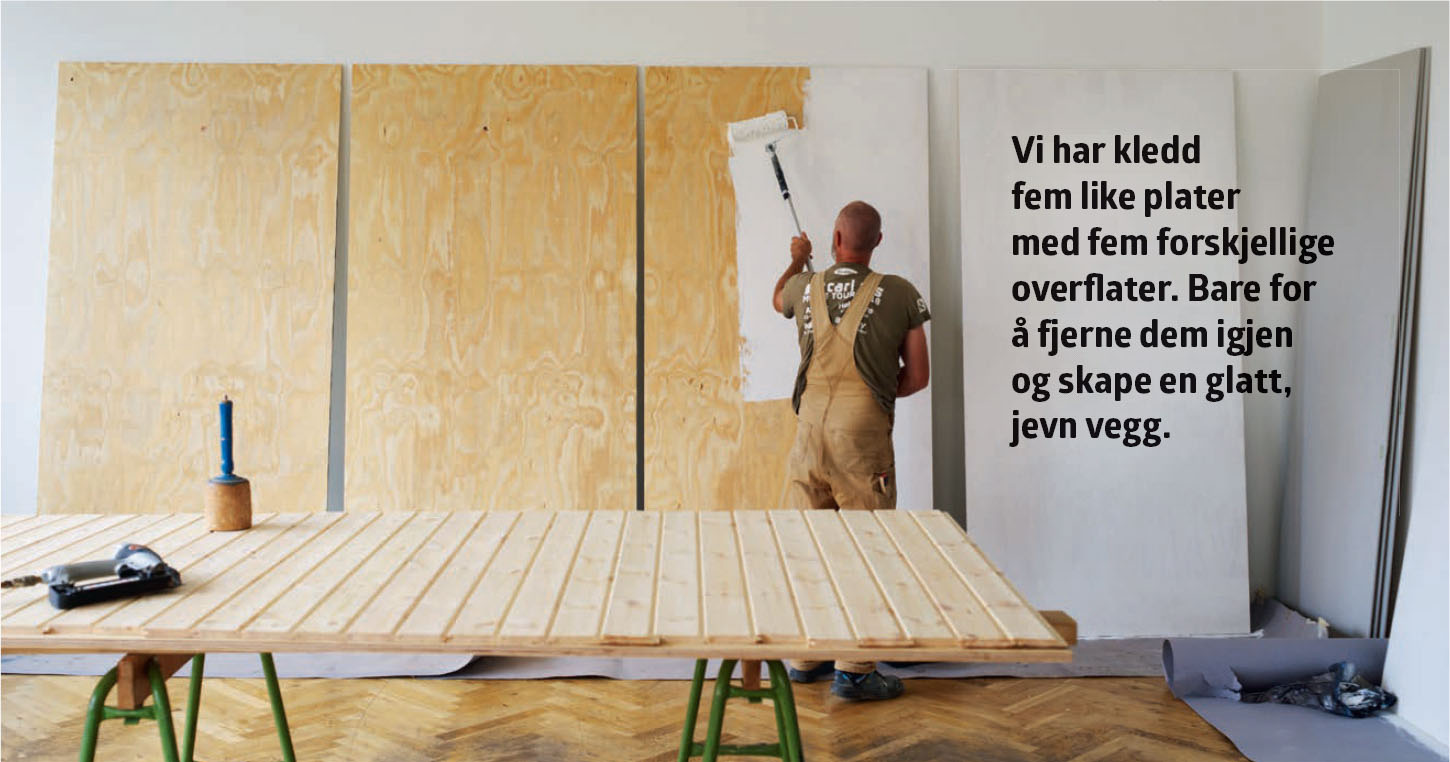 Det krever to lag, men da er veggen også helt glatt og klar til et nytt utseende.