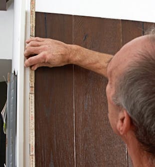 Når oppmålingen og oppstrekingen er ferdig, er det enkelt å få en oversikt over hvor mange hele bord du skal bruke, og i hvilken bredde de to endebordene skal skjæres. Sørg for at de to endebordene er noenlunde like brede. Det skaper det peneste helhetsinntrykket.