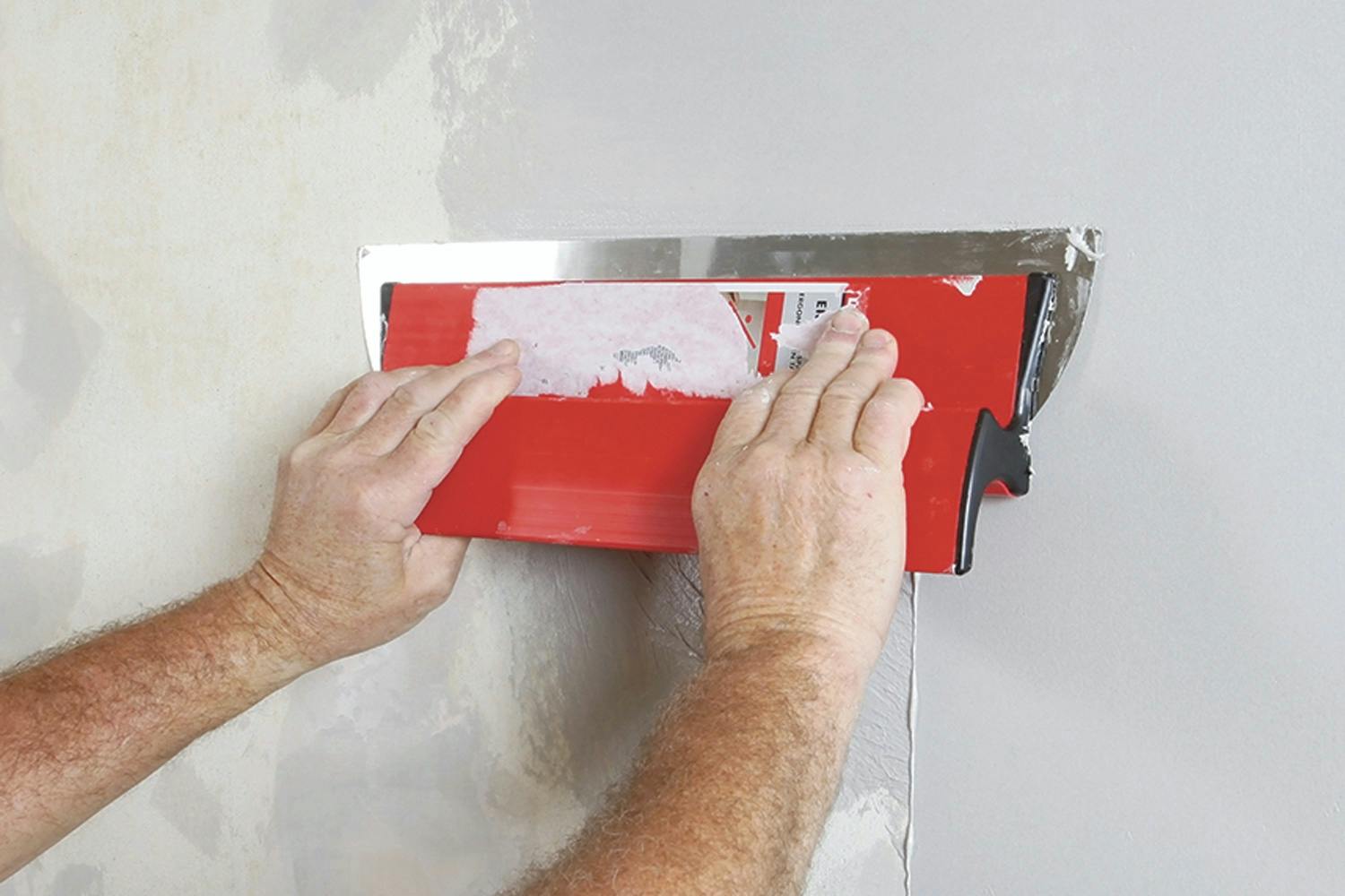 Sparkelmassen skal legges i lag på 1-2 mm, så forbruket er 1-2 liter per m² vegg. Når sparkelmassen er tørr, sliper du hele overflaten lett og støvsuger den før du fortsetter. Sandsparkelmassen skal ha en jevn og myk konsistens, så den er enkel å trekke ut. Det kravet oppfylles av den forholdsvis billige sandsparkelmassen vi har funnet. Sammenlignet med en dyrere utgave, merket vi ikke forskjell.