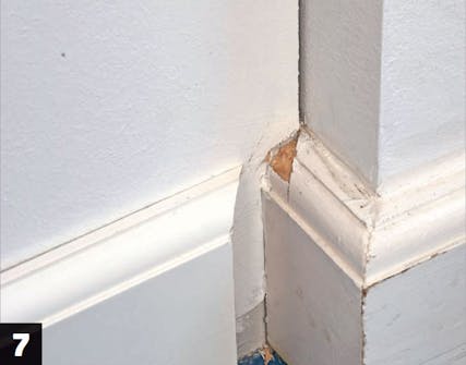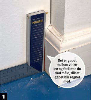 Bruk en vinkel, som legges plant med gulvet og støtes inn mot fotlisten til å sjekke i hvilken vinkel listen møter gulvet. Målene på det tre kantede mellomrommet som oppstår mellom vinkelen og listen, skal brukes senere.