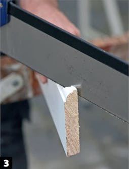 Legg et snitt på streken med en listesag eller en manuell gjæringssag. Du skal bare sage gjennom den profilerte delen av listen. Er listen firkantet, skal snittet gå til en femtedels dybde.