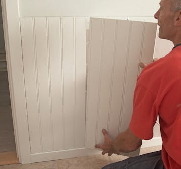 Før du begynner å montere panelet, er det en god idé å måle opp feltene, slik at du kan se om det går opp med hele panel. Det vil det sjelden gjøre, derfor må du som regel skjære til panelene. Hvis du skjærer det første og siste slik at de får samme størrelse, blir det penest.