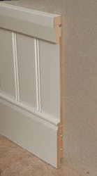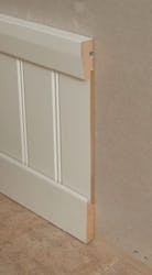 Her bygges brystpanelet opp fra bunnen, med nye fotlister. De settes opp først, slik at panelene kan “stå” oppå dem. Du kan også bruke de eksisterende fotlistene, hvis du er fornøyd med dem. Vi har valgt nye fotlister som er helt glatte, slik at helhetsinntrykket blir så enkelt som mulig.