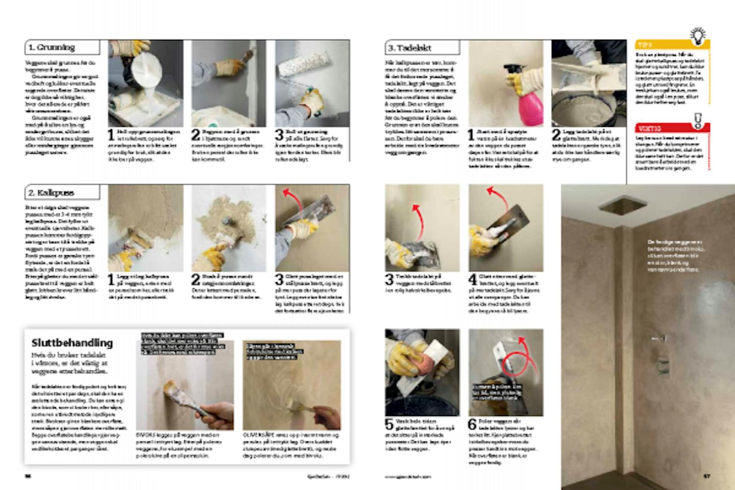 Hvis du bruker tadelakt i våtrom, er det viktig at veggene etterbehandles.