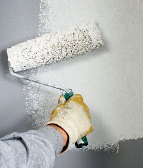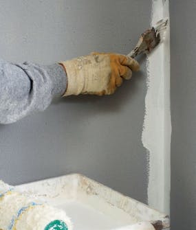 Begynn med å grunne i hjørnene og rundt eventuelle rørgjennomføringer. Bruk en pensel der rullen ikke kan komme til.