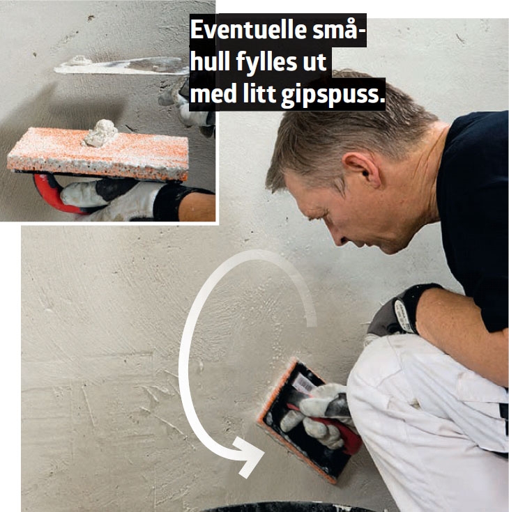 Før gipsen kan binde, skal veggen vaskes og primes. Gipspuss og primer bør være av samme merke. Da er du trygg på at de fungerer sammen.