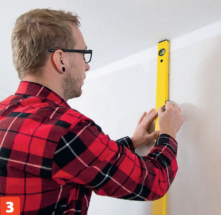 Tegn opp streker som deler opp veggen i felter med størrelsen til betongelementer. Bruk et vater for å lage strekene nøyaktig i både lodd og vater.