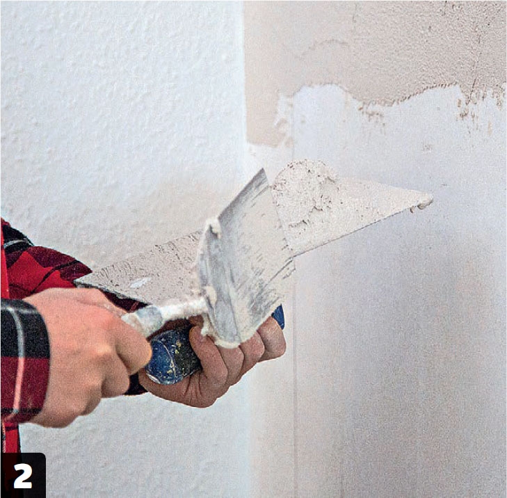 Gipspussen trekkes på veggen ovenfra og nedover. Prøv å lage så lange trekk som mulig, og prøv å gjøre flaten så jevn som mulig.