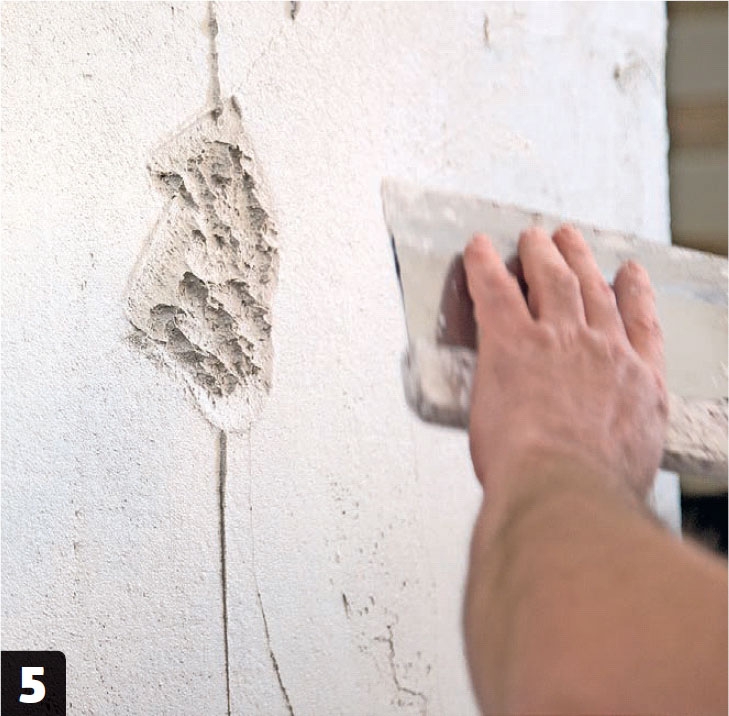Området du har gjort ujevnt, glattes med en bred sparkel så det blir jevnt igjen, dog med bittesmå “hull” i overflaten, som det også er i betong.