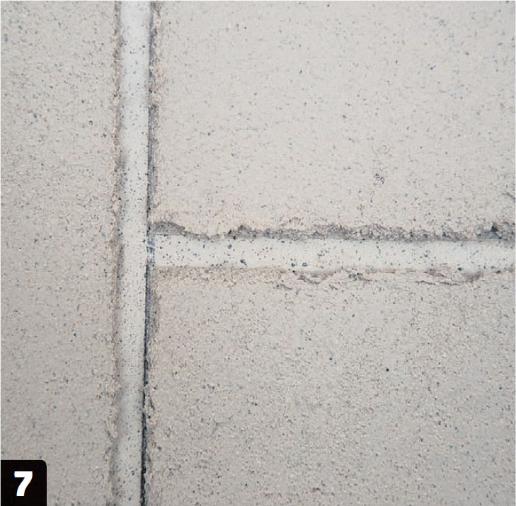 Fugene males med en smal pensel med en mørkere gråfarge enn veggen skal ha. Det fremhever fugene, og forsterker inntrykket av at veggen består av betongelementer.