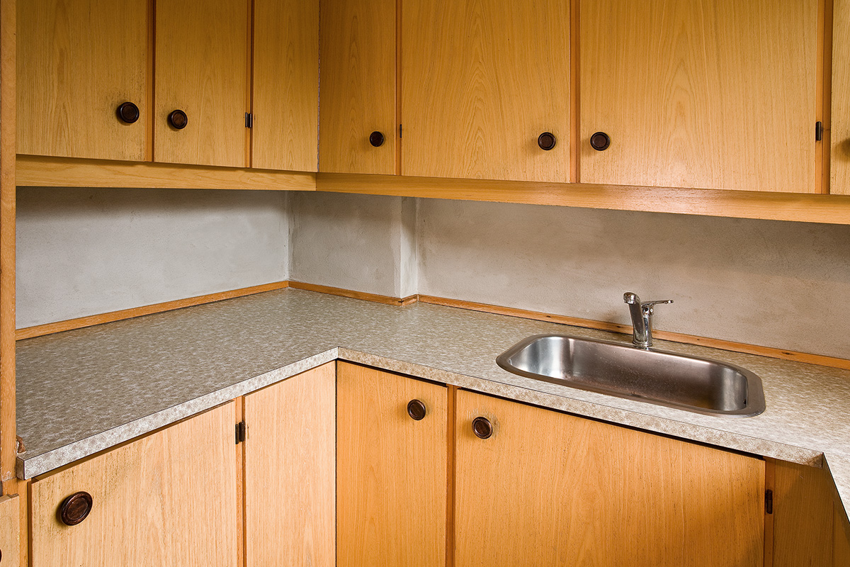 Alle kanter skjæres med fugeskje eller sparkel. Det gir helt skarpe og rette kanter mot lister og skapsider.