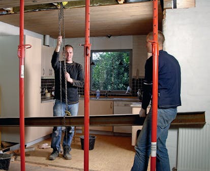 Skal du fjerne en bærende vegg, må taket understøttes midlertidig, til du får etablert en ny bæring.