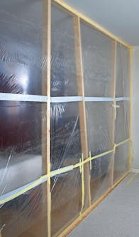 Bygg en støvvegg av lekter og plast. Den er en praktisk og effektiv avskjerming av resten av huset.