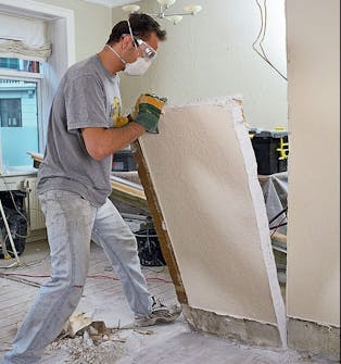 Nedriving støver. Skal du unngå støv og skitt i hele huset, skal det dekkes grundig til. Du skal også passe godt på de tilstøtende gulvene, slik at de ikke blir ødelagt.