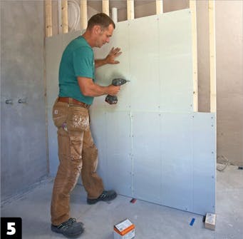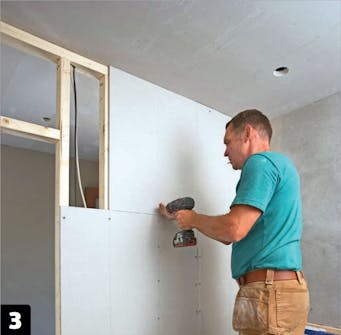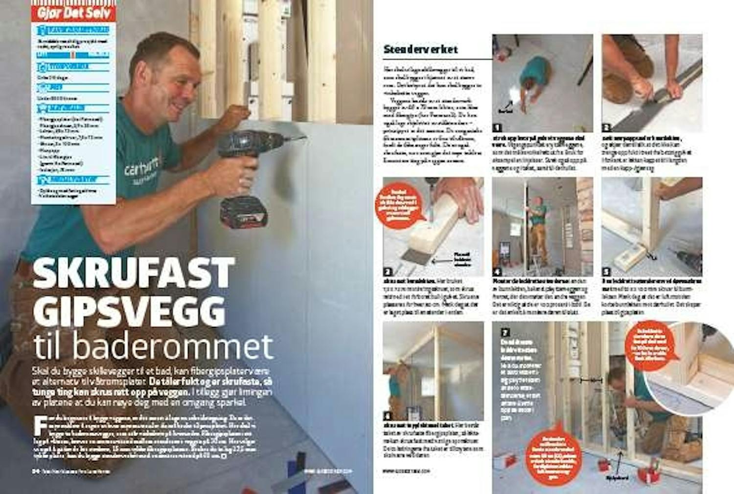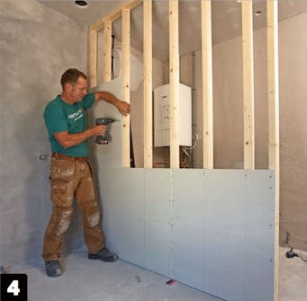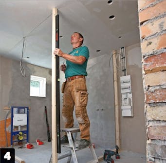 Veggene består av et stenderverk bygget av 48 x 73 mm lekter, som kles med fibergips (her Fermacell). Du kan også lage skjelettet av stålstendere - prinsippet er det samme. De uorganiske fibersementplatene er fine til våtrom, fordi de ikke suger fukt. De er også skrufaste, noe som gjør det mye enklere å montere ting på veggen senere.