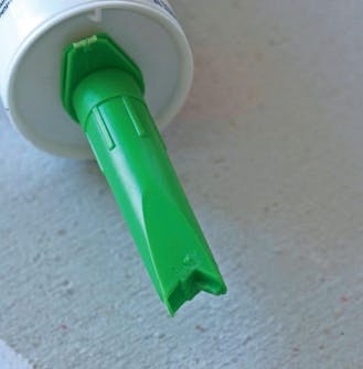 Limtuben til platene har en spesiell spiss, som sikrer at du får lagt limet riktig på kanten av platene.