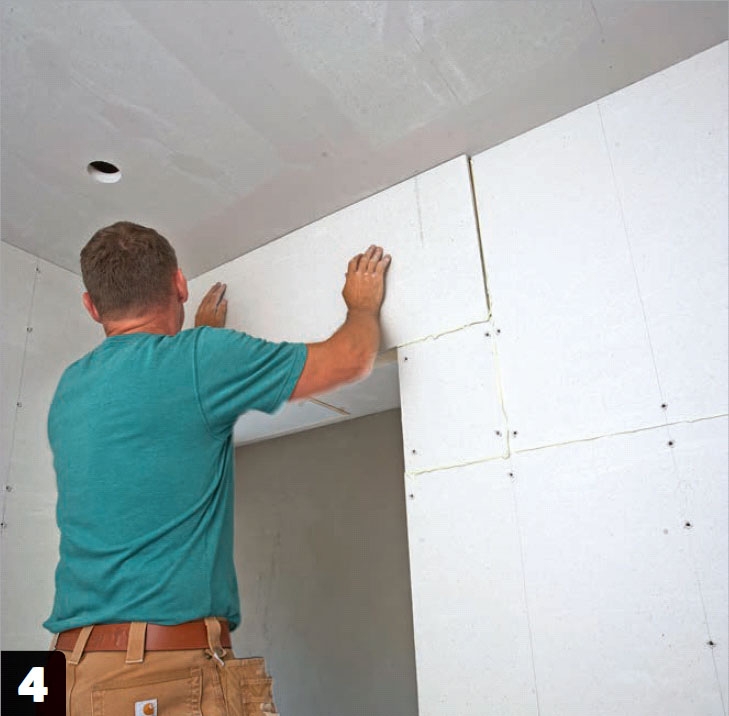 Sett opp fibergipsplater på den andre siden av veggen, etter at du har fylt den opp med isolasjon. Når alle plater er montert, skal limet tørke til dagen etter.