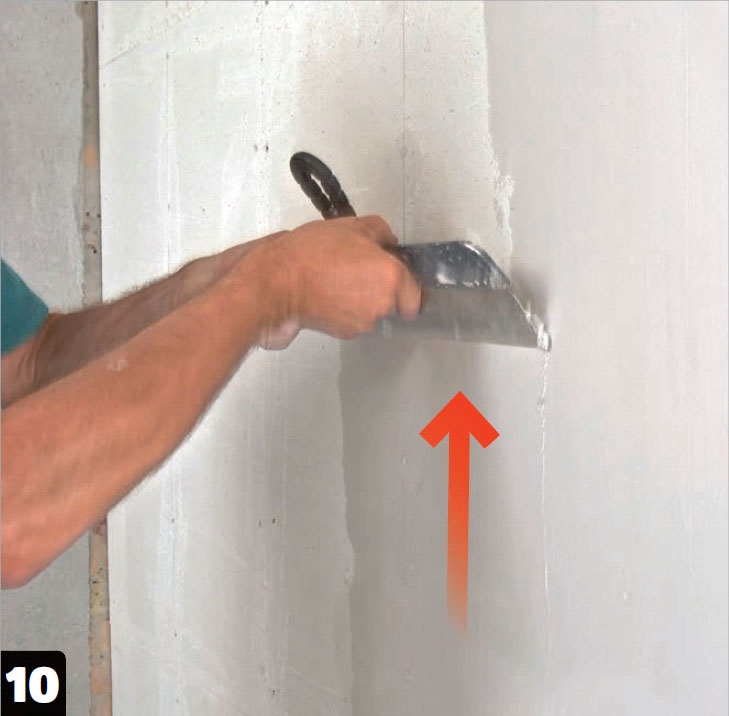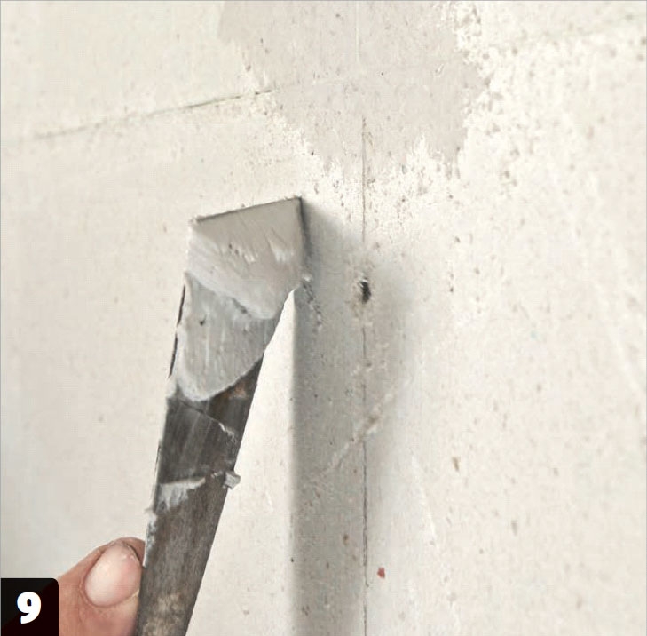 Fibergipsplatene skal skrapes rene, slik at begge vegger er helt plane. Det finnes en spesiell skrape som er beregnet til oppgaven.