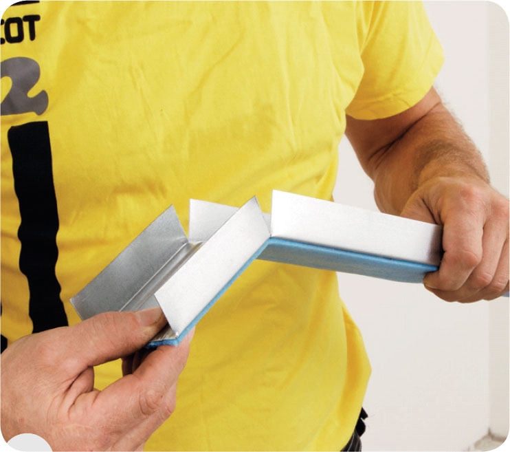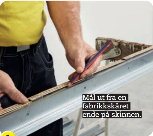 Ved de to ytterste markeringene på 110 cm klippes skinnen helt over. Du kan med fordel bøye skinnen, da er det enklere å komme til for å klippe.