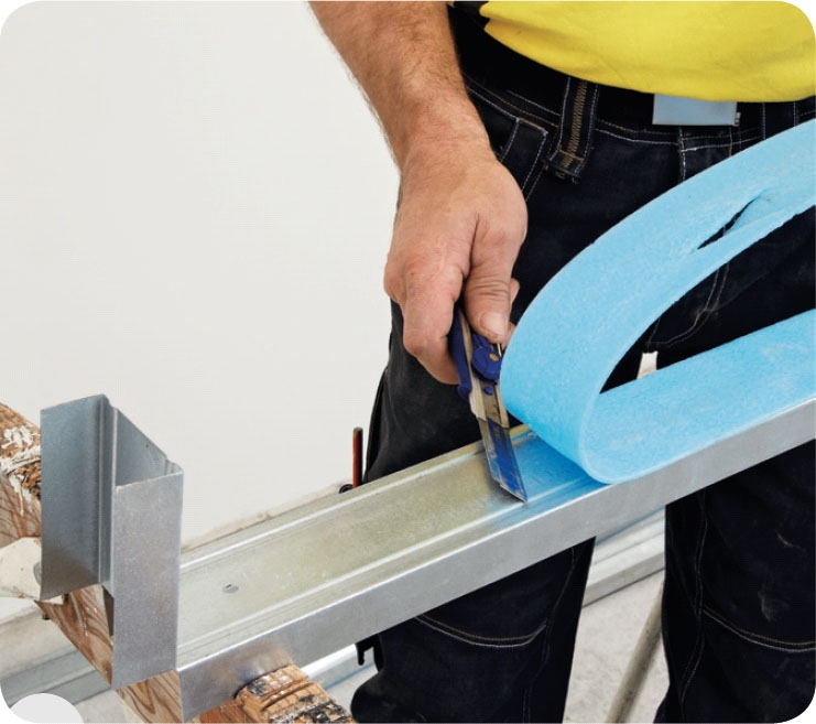 Skjær av filten/skummet som sitter på skinnen. Skummet skal sikre lydtetthet mot tak og gulv. Derfor er det overflødig, og i veien, her.