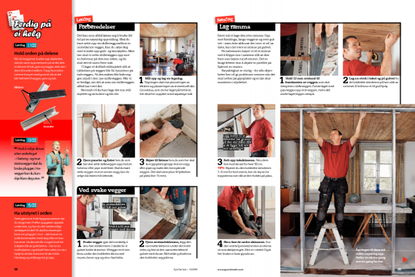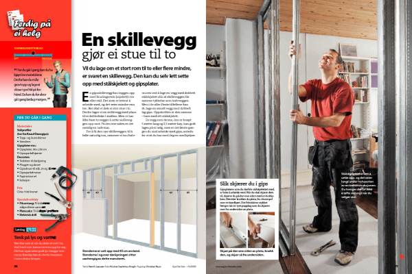 Det kan som alltid lønne seg å bruke litt tid på en nøyaktig oppmåling. Skal du bare sette opp en skillevegg mellom to motstående vegger, kan du nøye deg med å måle opp gulv- og takhøyden. Men her skal vi sette skilleveggen opp mot en halvmur på den ene siden, og da skal det til noen flere mål.