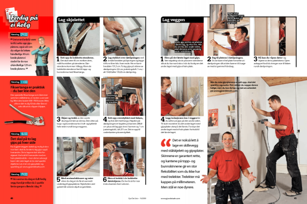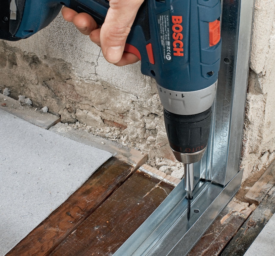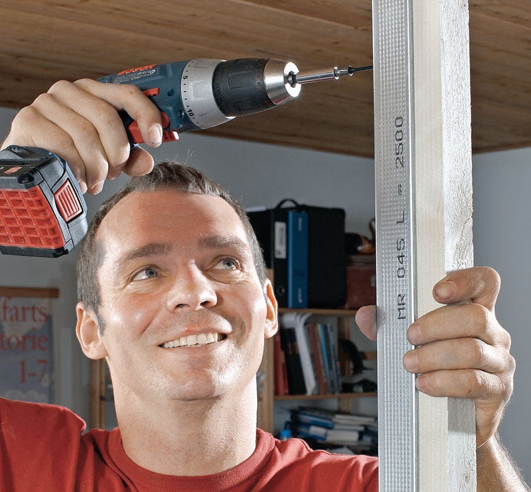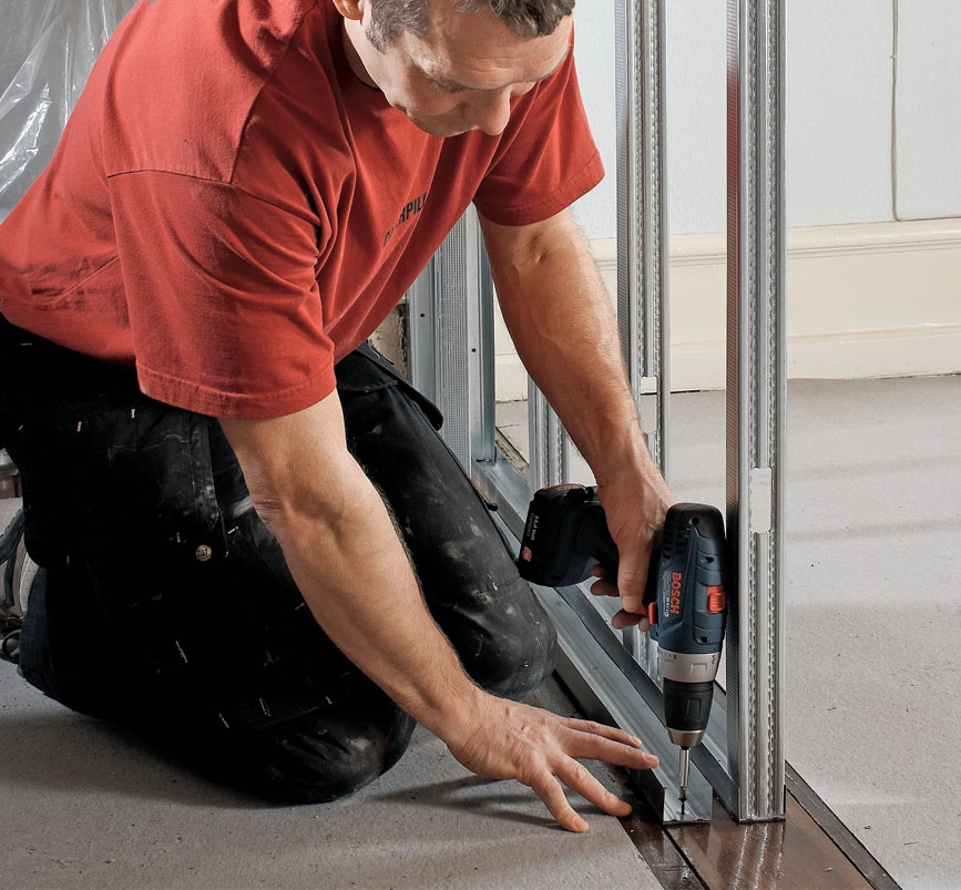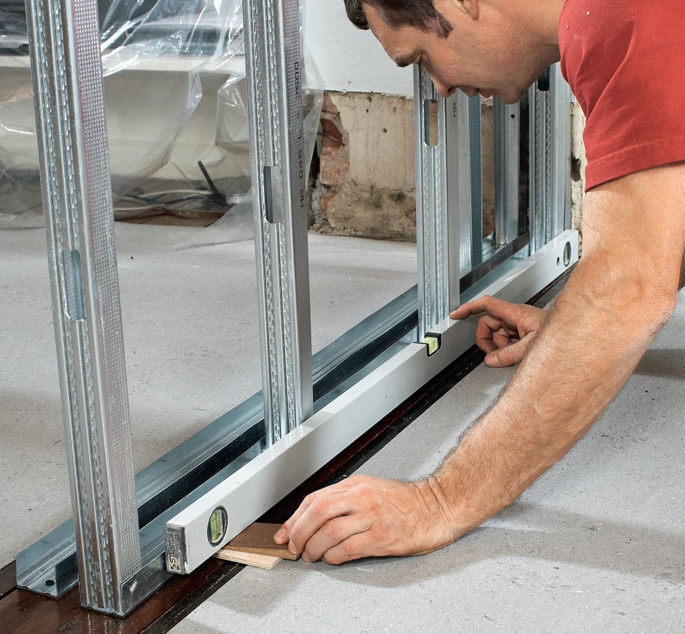 Det er nokså lett å lage en skillevegg med stålskjelett og gips plater. Skinnene er garantert rette, og kantene på topp- og bunnskinnene gir en stor fleksibilitet som du ikke har med trelekter. Tre lekter må kappes på millimeteren. Men stål er noe dyrere.
