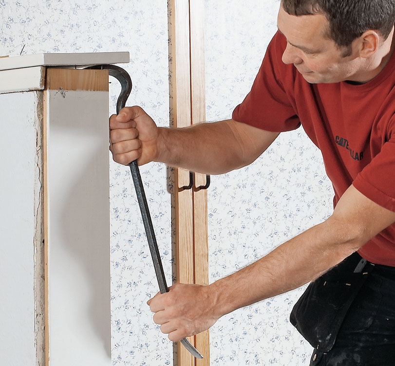Fjern paneler og lister hvis du som her skal sette skilleveggen opp mot en halvmur eller pipe med lister. Skal du bare sette veggen mot en annen vegg, kan du velge å la listene bli sittende.