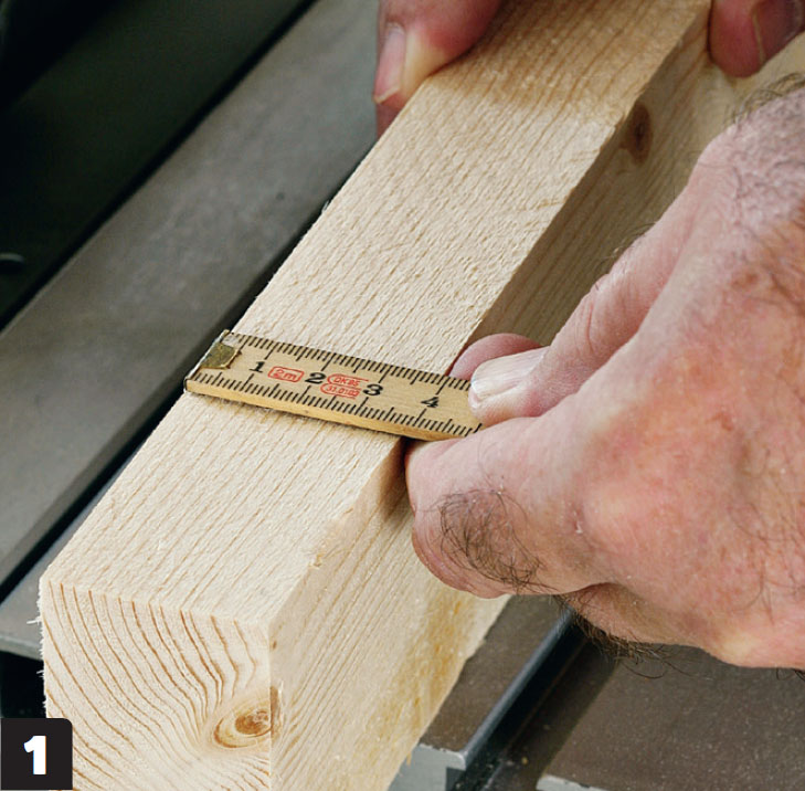 Finn størrelsen på lekten og merk opp, slik at du vet hvor mye du skal skjære av på hver side for å få den størrelsen du ønsker. Her lager vi en list som skal bli 38 x 38 mm.