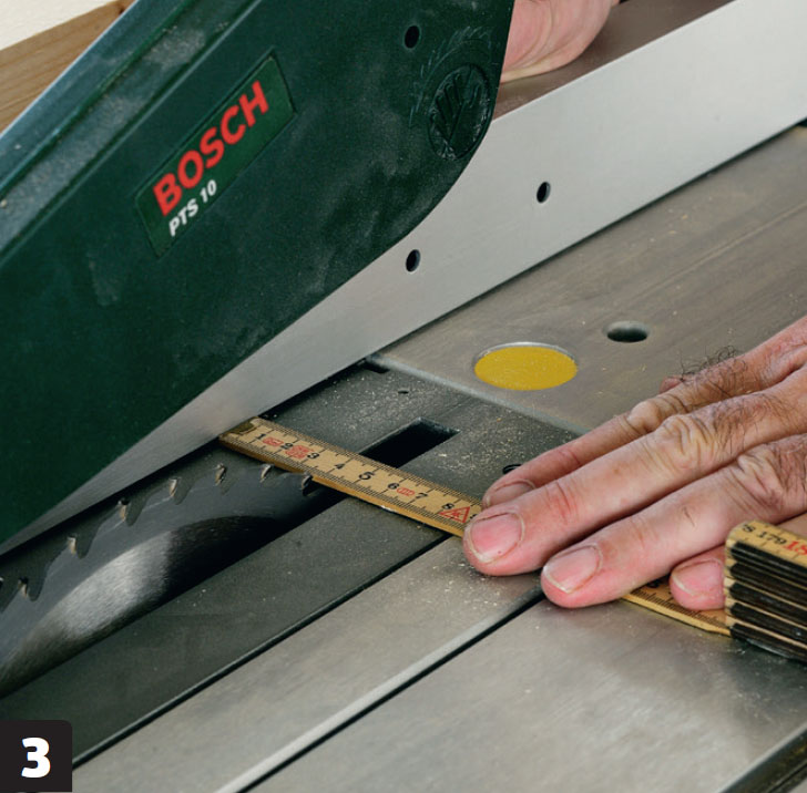 Juster parallellanlegget. Bruk millimeterskalaen, hvis sagen har en slik, og juster målet til 38 mm - det blir da avstanden fra anlegget til sagbladet.