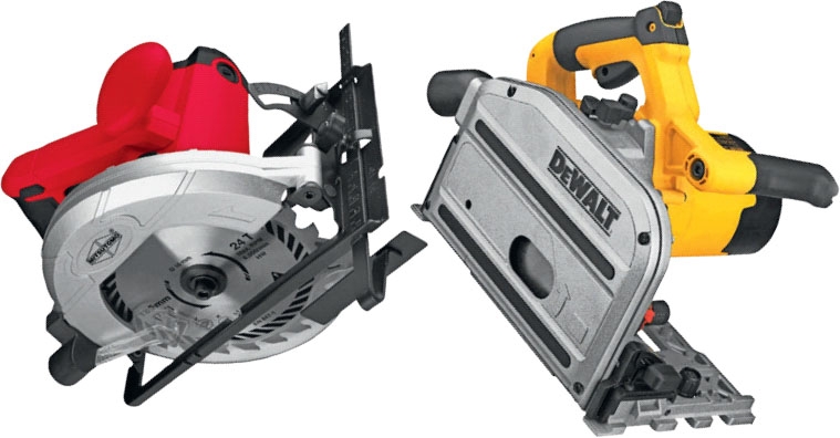 En sirkelsag og en dykksag har mange ting til felles. De kan lage lange, rette snitt med et anlegg eller en skinne. Dykksagen kan også dykkes ned på midten av en plate.