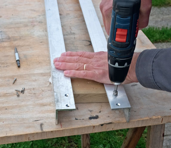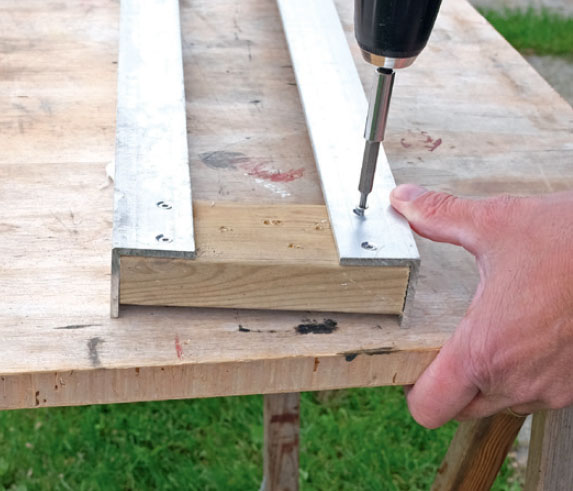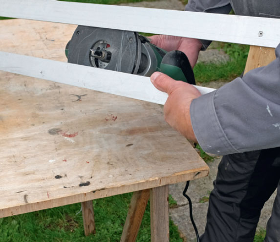 Du kan enkelt lage din egen føringsskinne av et par L-formede aluminiumsskinner, 40 x 40 mm, som skrus fast på et trestykke i hver ende.