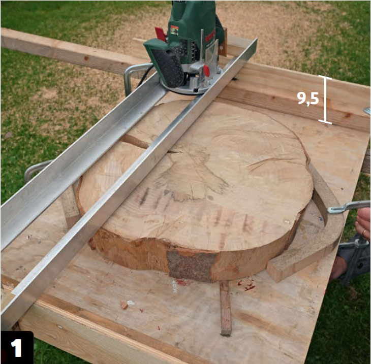 Sjekk at notfresestålet sitter i riktig dybde. Fres et prøvespor i emnet, for å forsikre deg om at fresen er riktig justert. Er emnet litt ujevnt, kan du klosse det opp slik at det ligger stabilt og så rett som mulig.