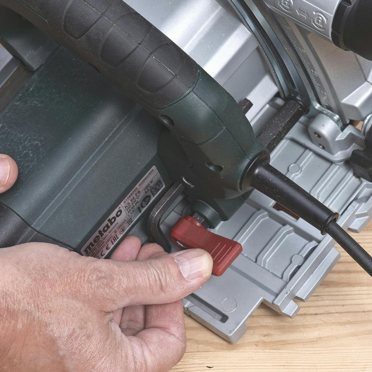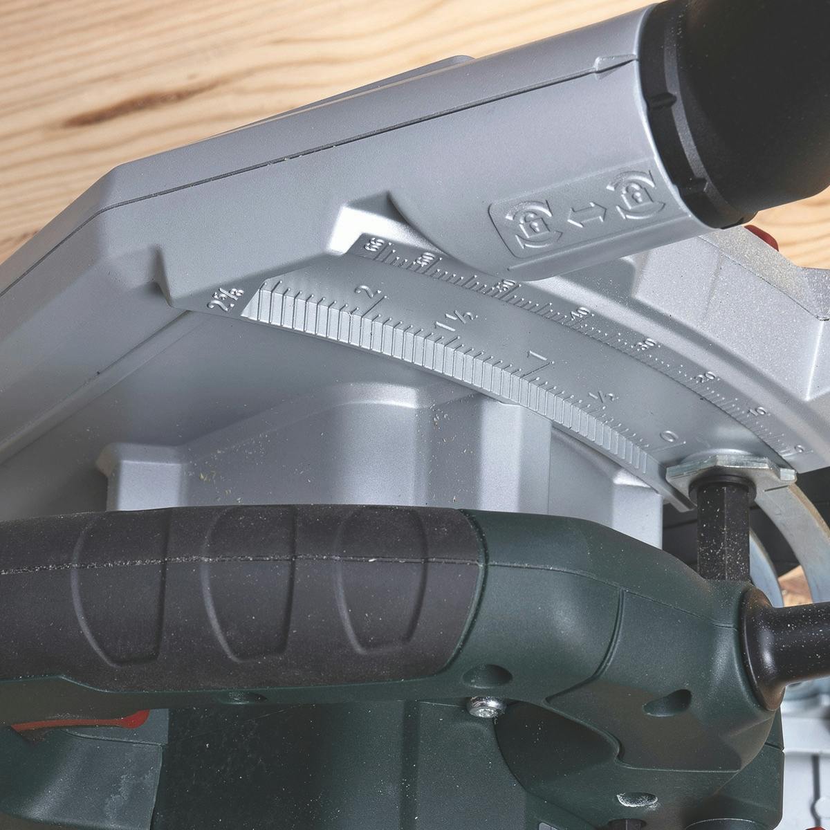 Skalaene til både vinkel og dybde er store og tydelige og dermed enkle både å avlese og justere nøyaktig. De fleste sirkelsager kan vinkles 45 grader, men Metaboen kan vinkles en anelse mer, nemlig 48 grader. Det er smart, og det gjør sagen litt mer allsidig. Metaboen fungerer også godt sammen med føringsskinnen. Første gang du bruker skinnen, tilpasser sagen seg til skinnen ved å skjære av litt av gummileppen til skinnen (det gjelder de fleste skinner). Deretter passer skinnen og sagen perfekt sammen.