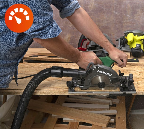 Hastigheten er viktig når det skal sages mye og presisjonen betyr mindre. Vi testet hastigheten ved å sage med stort press i en OSB-plate.