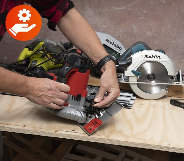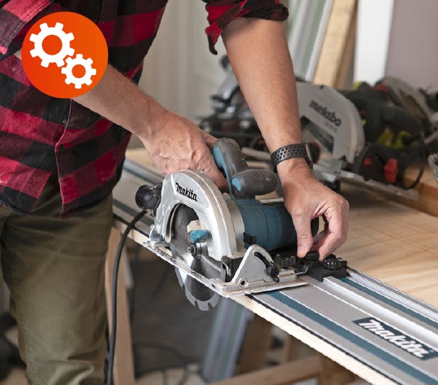 Sirkelsagen er det riktige verktøyet når det skal lages helt rette snitt i benkeplater og sponplater. Den er enkel å betjene, og den er lett å oppnå pene resultater med.