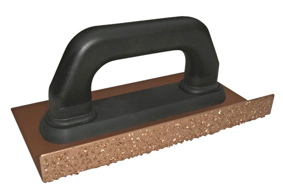 Et slipebrett med en 90-graders kant og belagt med hardmetallkorn (korn 24) holder mye lenger enn vanlig slipepapir. Du ser det ofte i verktøykassen til murere, og det er ideelt til grove, krevende slipeoppgaver, for eksempel på puss, murstein, betong, epoksy, sparkelmasse og glassfiber. Prisen på brettet er fra cirka 350 kroner.