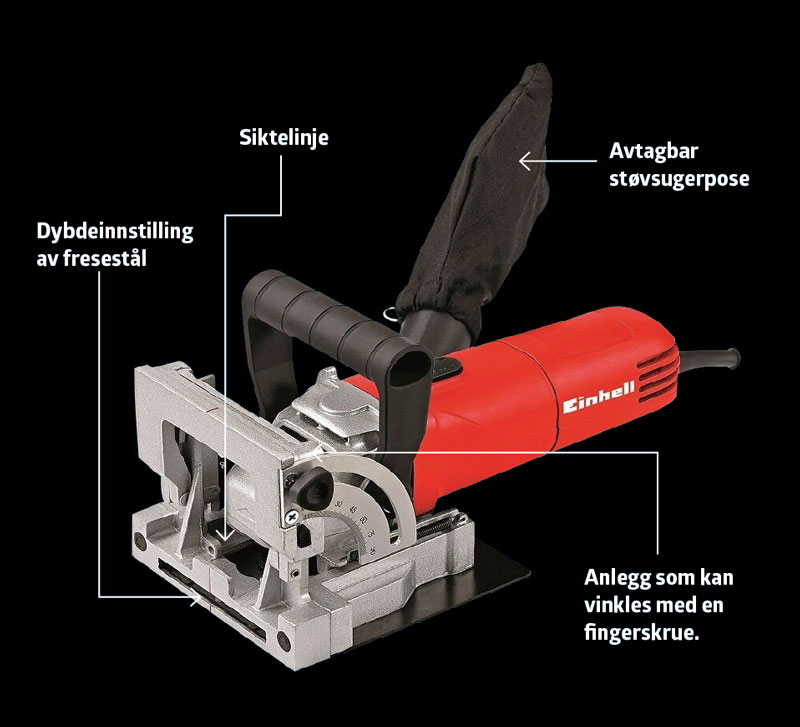 Lamellfresen vi bruker, er en Einhell TC-BJ 900. Den kan kjøpes for under 1000 kroner, og fungerer fint til de fleste sammenføyninger.