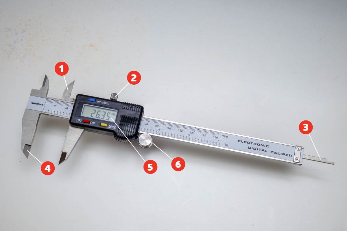 Kan brukes til å måle tykkelsen på et objekt eller den ytre diameteren av en rund gjenstand – for eksempel en skrue.