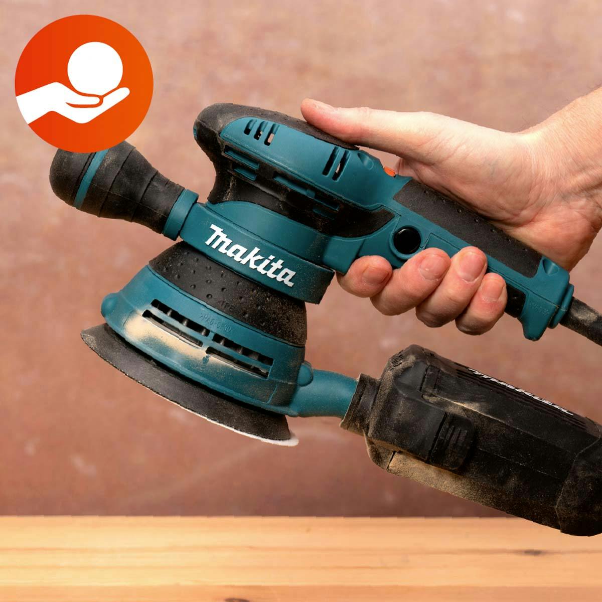 Ergonomien er alltid viktig – særlig for vibrerende og ristende verktøy som en eksentersliper, som ofte brukes i lenger tid om gangen.