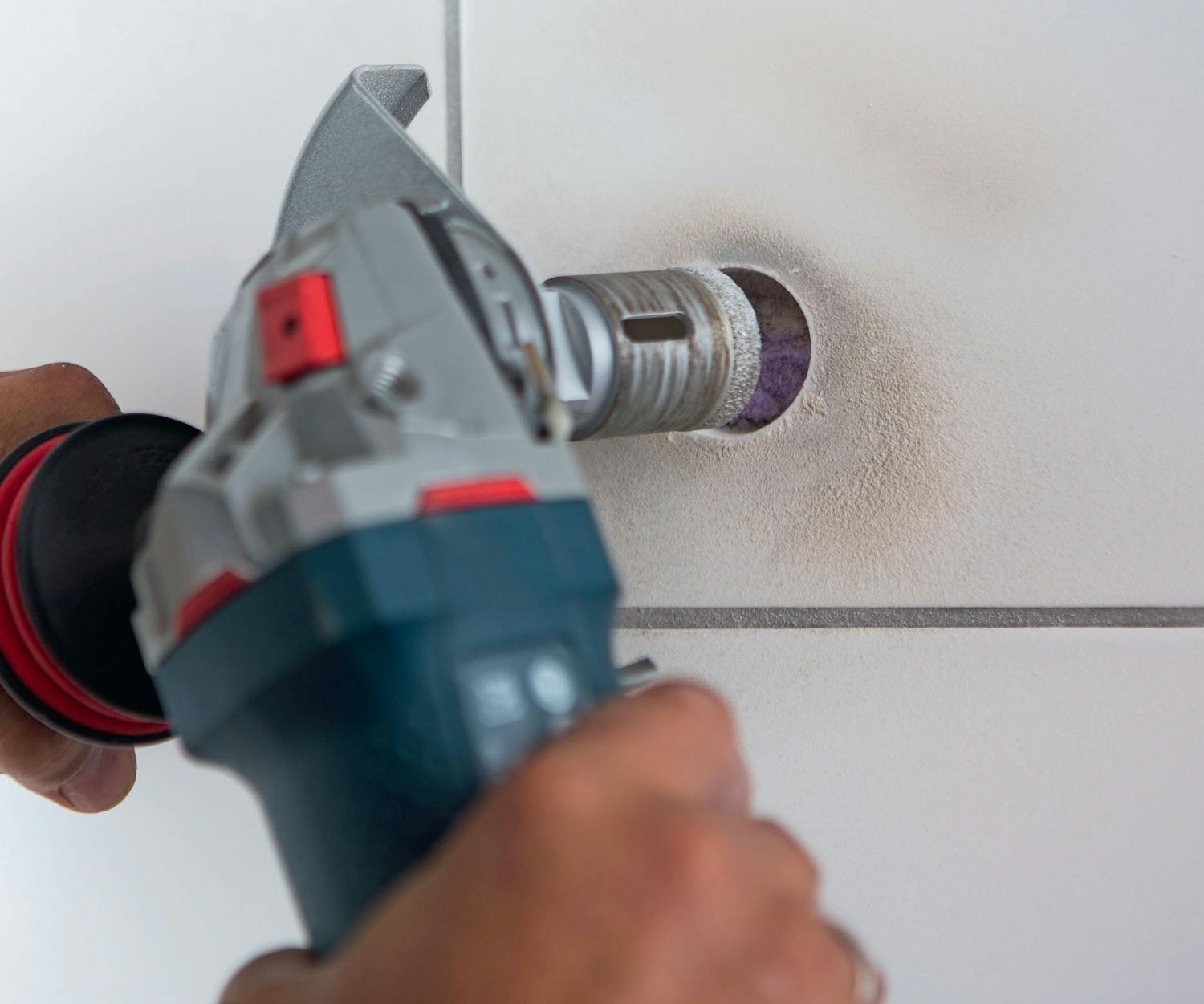 Få ting er mer gjenstridige å bore gjennom enn en baderomsflis, med sin harde og glatte, brente overflate. Her er vinkelsliperen i sitt rette element. Med et diamant-koppbor kan du nemlig fint bore deg gjennom den harde overflaten og lage hull til vannrørene.