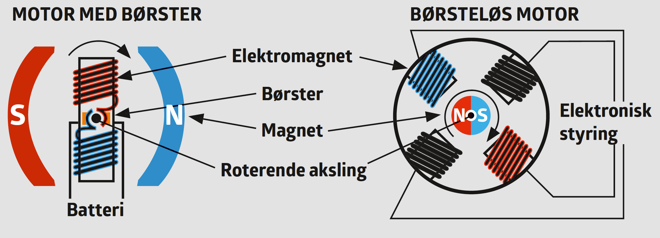 "Børsteløs" er et av de store, viktige nye ordene når det gjelder elektrisk verktøy. Med god grunn. I moderne børsteløse motorer er nemlig de små kullstiftene (børstene) som sitter i gammeldagse el-motorer fjernet. I stedet er maskinene utstyrt med avansert teknologi. Det har redusert friksjonen og dermed også slitasjen i motoren betydelig. Det gir lenger levetid og en motor som er omkring 25 % mer energieffektiv.