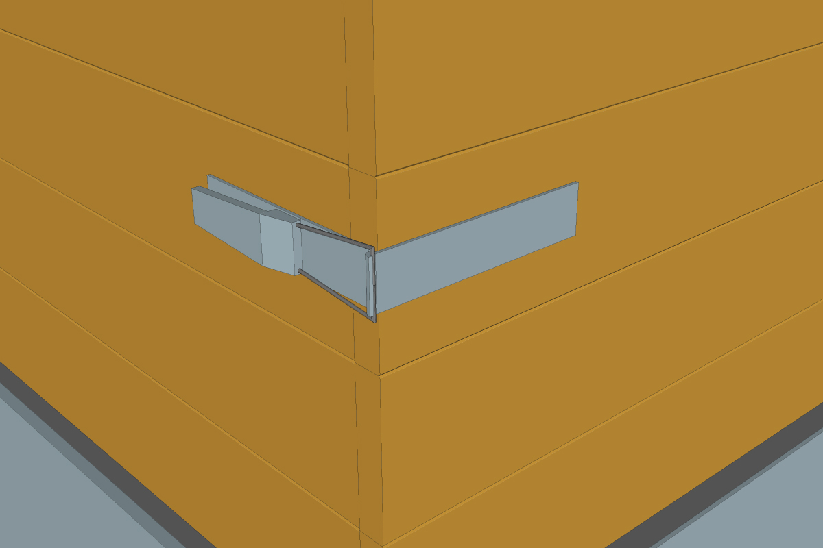 Når du har bygget alle de fire sidene, skal du montere lemlåser og bøyler. Vi velger å montere bøylene i de nest øverste bordene på langsidene, og deretter montere lemlåsene på endestykkene.