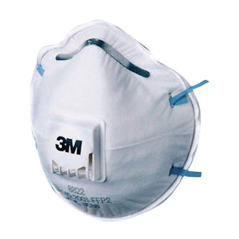 Engangsstøvmasken brukes til beskyttelse mot støv og væskepartikler. Det er litt tungt å puste i masken, ettersom det skjer gjennom filtmaterialet.