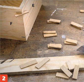 Lag lamellene av noen listestykker, som du har saget ut i passe tykkelse på bordsagen. Du trenger ikke å kappe dem i nøyaktig lengde, ettersom det overskytende uansett skal sages vekk senere.