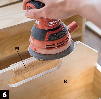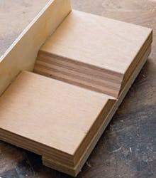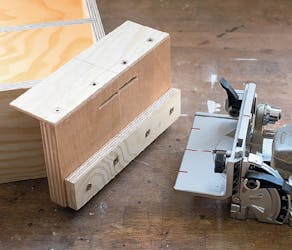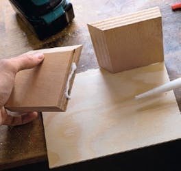 Hjørnene på alle kassene skal forsterkes med små lameller som du lager selv. Sporene til lamellene lages med en lamellfres. Bruker du en mal til sporene, forenkler det jobben og gjør det lettere å få lamellene til å sitte på riktig sted.